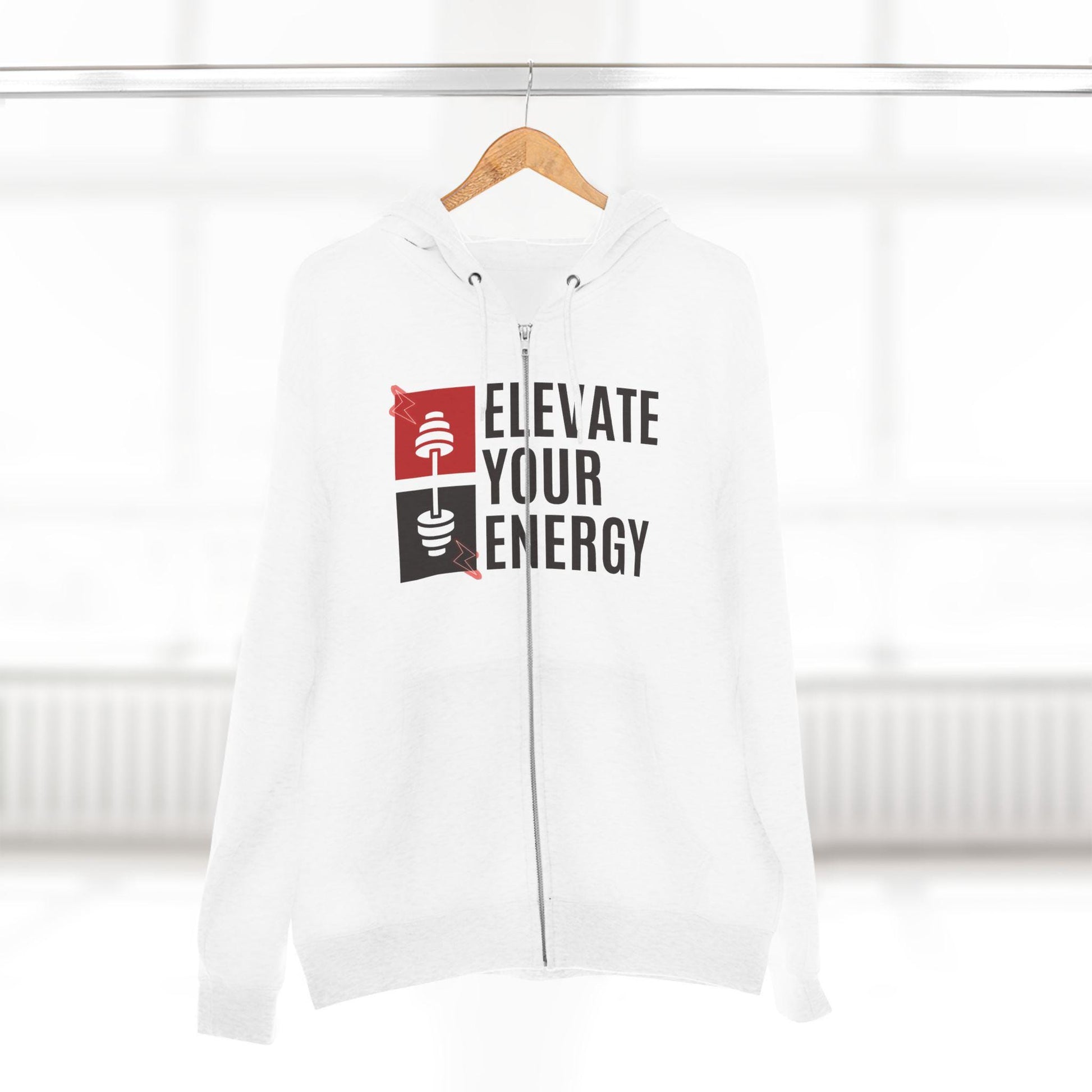 ELEVATE YOUR ENERGY Unisex Zip Hoodie Soft Cotton Blend Gym Yoga and Wellness Sweatshirt Comfortable Athletic Fit and Everyday Wear
